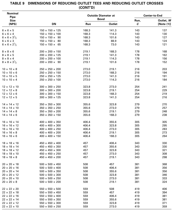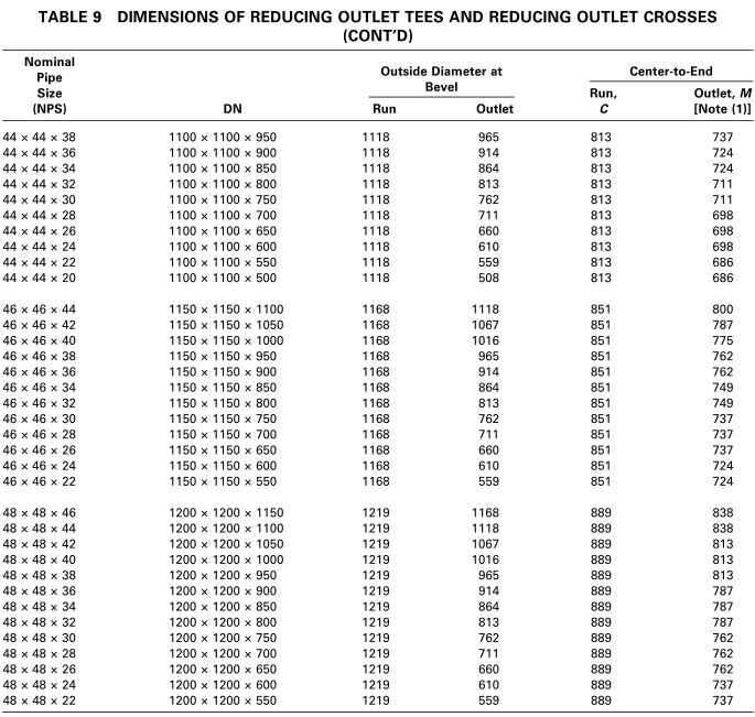 3、對(duì)焊等徑三通、等徑四通尺寸參數(shù)表