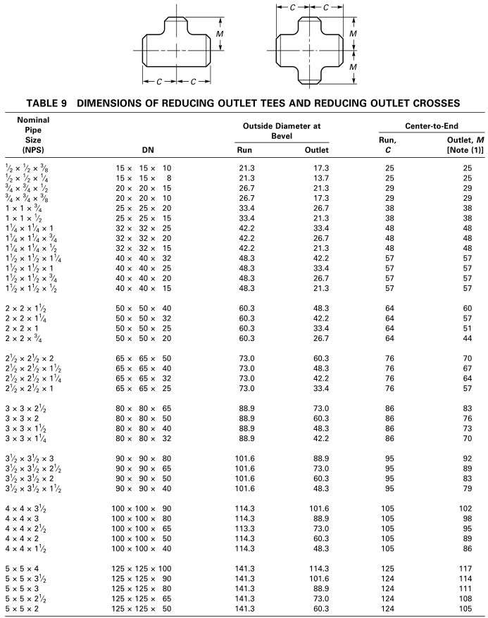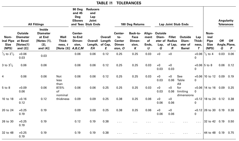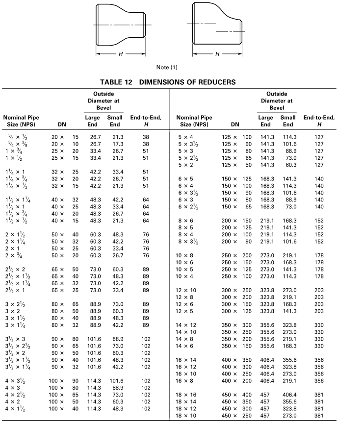 常見(jiàn)的對(duì)焊管件類型有:90度彎頭、45度彎頭、三通、四通、管帽、同心異徑管、偏心異徑管、翻邊短節(jié)等。ASME B16.9標(biāo)準(zhǔn)對(duì)各類對(duì)焊管件的尺寸范圍做了明確規(guī)定。