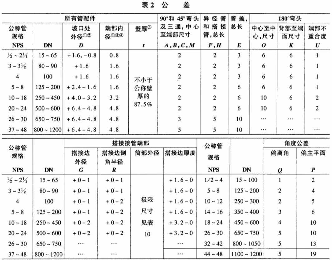 4、ASME B16.9生產(chǎn)標準公差范圍: