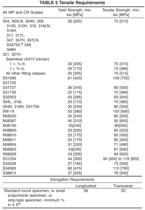 3、不銹鋼對焊異徑管材質(zhì)的機械性能: