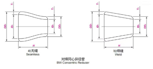 以上為各國對于不銹鋼對焊異徑管制定的生產(chǎn)標準,目前市場上常見的生產(chǎn)標準為美標ASME B16.9標準。