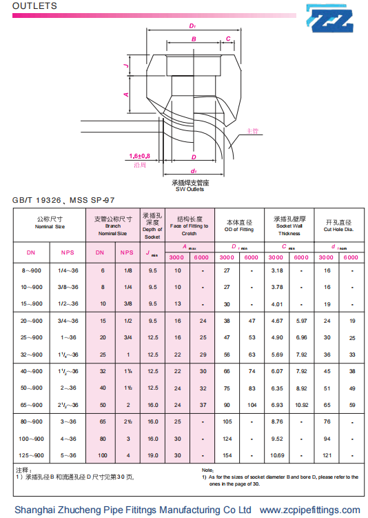 MSS SP-97是美標鍛制支管座的生產標準。根據這個標準,可以設計和制造出各種類型的支管接頭,如焊接支管座、螺紋支管座、承插支管座等。支管座又叫做支管臺、鞍座等,是一種小型鍛制管件。它主要用于支管連接的補強,可以代替使用異徑三通、補強板、加強管段等支管連接型式。在高壓、高溫、大口徑、厚壁管道中,支管臺的使用日益廣泛,它具有安全可靠、降低造價、施工簡單、改善介質流道、系列標準化、設計選用方便等優(yōu)點。下面我們就來了解一下MSS SP-97標準的內容。