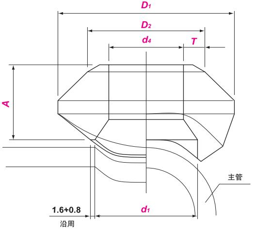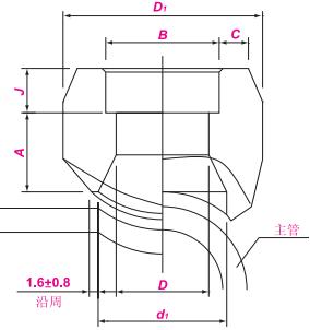 主管公稱尺寸 | 支管公稱尺寸 | 長度 | 本體直徑 | 支管端部外徑 | 螺紋長度 | 開孔直徑 | ||||||