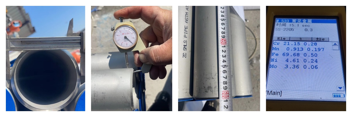 我們?yōu)榭蛻籼峁┊a(chǎn)品出廠質(zhì)檢服務(wù),UNS S32205雙相不銹鋼管在出廠前需要經(jīng)過外徑測量,壁厚測量,長度測量和光譜檢測,確保每批出廠的鋼管都是符合標(biāo)準(zhǔn)要求的。