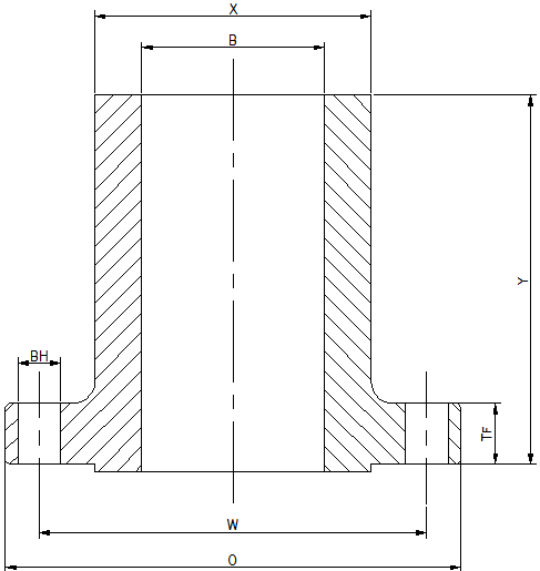 長(zhǎng)頸對(duì)焊法蘭(LWN)設(shè)計(jì)用于代替焊頸法蘭和管件,這種設(shè)計(jì)減少了頸部應(yīng)力,并將其轉(zhuǎn)移到與容器連接的底部。長(zhǎng)焊頸的設(shè)計(jì)為高壓和高溫應(yīng)用提供了更厚的頸部。法蘭端和密封面按照ASME B16.5生產(chǎn)標(biāo)準(zhǔn),適用于1/2英寸至24英寸的管道尺寸;ASME B16.47生產(chǎn)標(biāo)準(zhǔn)適用于26英寸至60英寸的管道尺寸。通常,法蘭尺寸和壓力越大,焊頸長(zhǎng)度越長(zhǎng)。 長(zhǎng)頸對(duì)焊法蘭的頸部口徑與管道尺寸相同,常見的頸長(zhǎng)尺寸為:9英寸(228.6mm)、12英寸(304.8mm)和16英寸(406.4mm),也可以根據(jù)客戶的實(shí)際需求按照設(shè)計(jì)圖進(jìn)行定制。